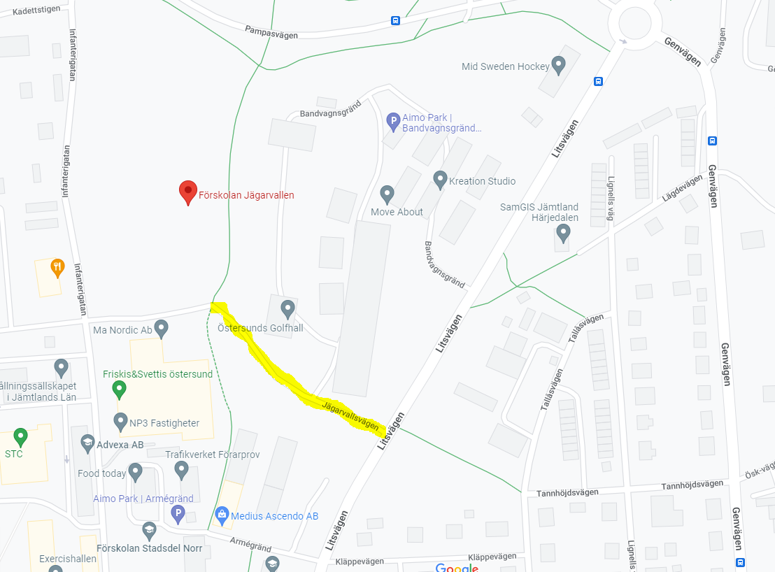 Sedan de nya lägenheter på Stadsdel Norr blev inflyttningsklara har problematiken av parkerade bilar på Jägarvallsvägen (mellan Infanterigatan och Litsvägen) ökat drastiskt. Jag har en dotter som går på Jägarvallens förskola, och varje morgon kommer vi i norrgående riktning från Litsvägen för att svänga ned på Jägarvallsvägen och till förskolan. Det står då i regel bilar parkerade i både södergående riktning och norrgående riktning. I samband med att vintern kom har det nästan blivit omöjligt att ta sig fram säkert (både med bil eller som gående) längs med Jägarvallsvägen. Snön i kombination med bilar på båda sidor vägbanan gör det svårt att ta sig fram och riskfyllt. Häromdagen satt en mindre lastbil fast, pågrund av halt väglag och att bilar stod parkerade på båda sidorna av vägen vilket gjorde att lastbilen inte fick plats och fick promsa in hastigt i "svängen" precis ovanför förskolans personalparkering. Det slutade med att lastbilen gled bakåt och nästan rakt in i min bil som var strax bakom. Det är inte bara riskfyllt för bilister utan även fotgängarna. Jag ser att parkeringsförbud längs med gatan är enda lösningen på det här. Idag är det ohållbart! Bilarna skymmer dessutom sikten vilket gör det extra riskfyllt att svänga in på Jägarvallsvägen från Litvägen, eller tvärtom. Man ser inte om det kommer bilar, cyklister eller gående. .
